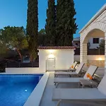 Villa Marijo med 4 sovrum, som ligger i Ražanjs strandområde, har en terrass samt en pool för en trevlig vistelse. Den strandnära villan med 4 badrum erbjuder möjligheter till vattensportaktiviteter, vindsurfning och kanotpaddling i området, cirka 25 minuters promenad från Zmajevo Oko.